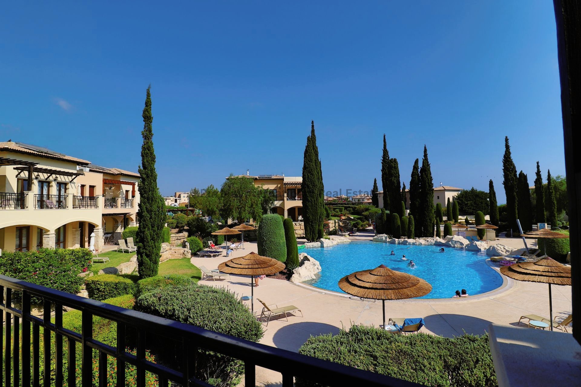 This stunning 2-Bed, 2-bath luxury apartment in positioned in the upmarket project of Theseus Village with two magnificent communal luxury swimming pools, mature public gardens and is only a few minutes’ walk to all the 5-star luxury amenities this amazing resort has to offer.As you enter the apartment you are greeted with a very spacious lounge area with full length glass doors letting in ample light with some of the most stunning views of the main communal pool in Theseus Village, with an open plan dining area as well. The kitchen is luxurious with full granite worktops and all the latest brand appliances fully fitted in. To the right of the apartment you will find a very spacious guest bedroom with fully fitted luxury wardrobes and a spectacular luxury bathroom with the added luxury of a private terrace. To the left of the apartment you will find the spectacular master suite with again fully fitted luxury wardrobes and a beautiful luxury en-suite bathroom. Stepping outside really takes your breath away with a very large private veranda area with plenty of shaded spaces for outside dining and relaxing, and probably one of the best views the resort has to offer of the main communal pool of Theseus Village.