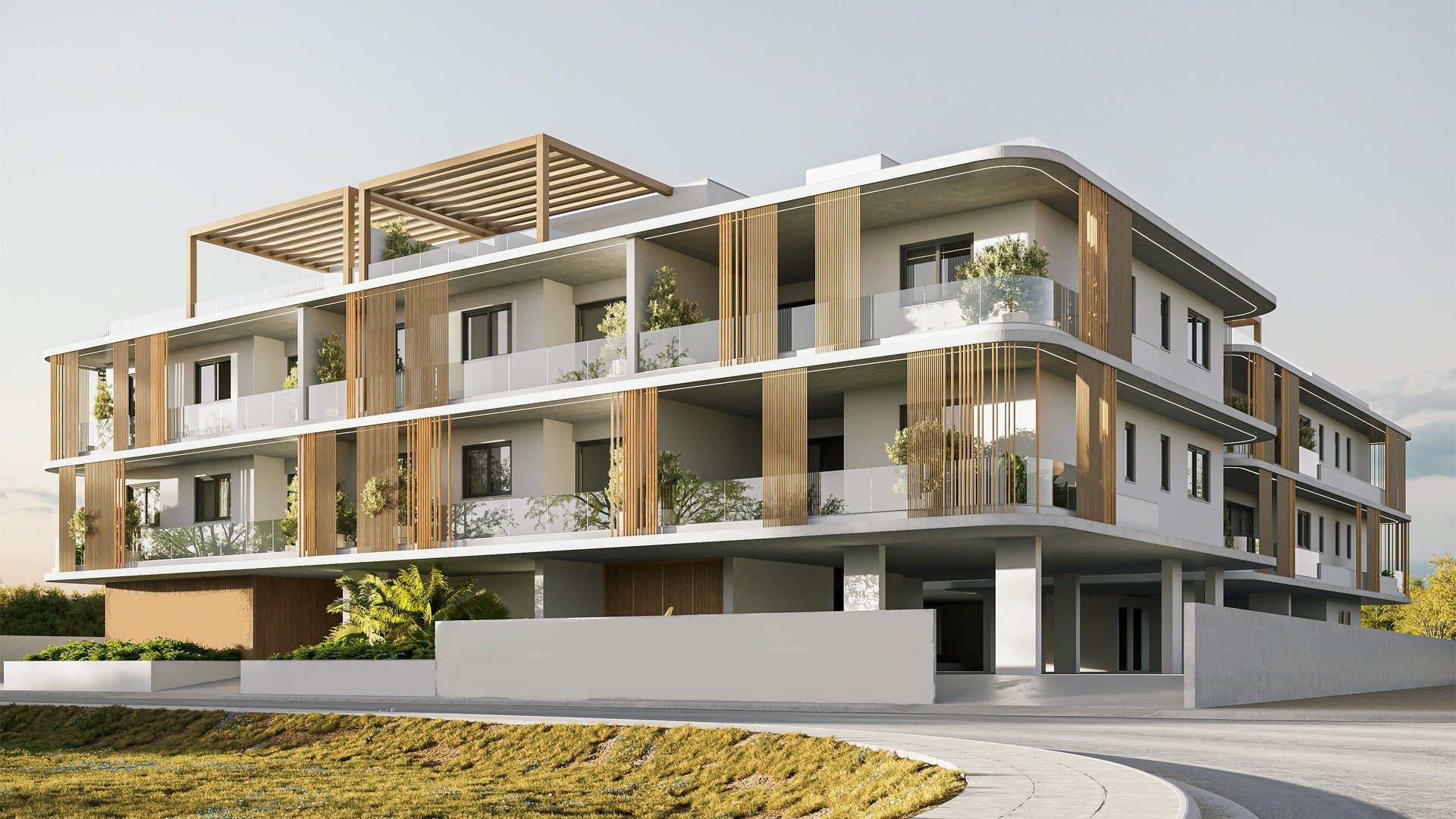 This residential development in Livadia, Larnaca, offers three 1-bedroom and two 2-bedroom apartments on the first floor, mirrored on the second floor. The apartments feature open-plan layouts, well-proportioned rooms, private balconies, and large windows for natural light. Selected units include private roof gardens, providing additional outdoor space and views.The project offers gated access, private parking, storage rooms, landscaped gardens, a lounge area, a kid’s playroom, and provisions for electric vehicle charging. Eco-friendly solar systems and advanced thermal insulation are also included. The location ensures convenient access to supermarkets, schools, the beach, the city center, and Larnaca International Airport.