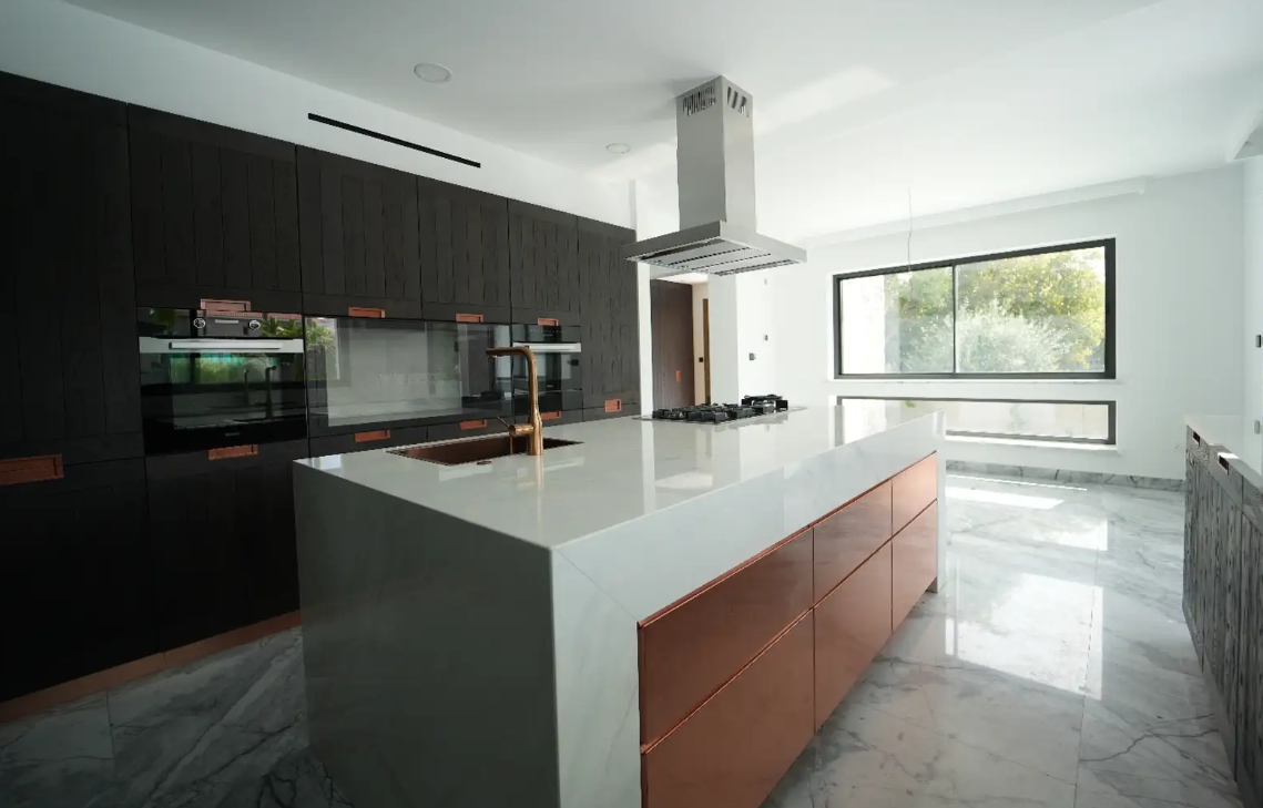 Вилла расположена всего в 300 метрах от побережья в престижном и обжитом районе Papas города Лимассол. Объект занимает просторный участок площадью 1 080 м², жилая площадь — 470 м². Планировка включает три мастер-спальни, комнату для прислуги и отдельное помещение, которое может использоваться для охраны, гостей или обслуживающего персонала — всего шесть спален.